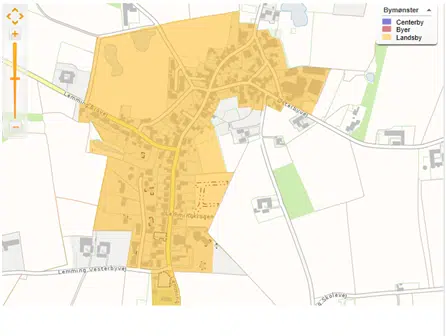 Lemming, eksempel på landsby i landzone, som omfattes af byreglerne.