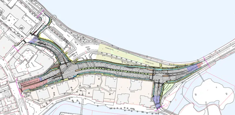 Første skridt er at flytte Christian 8.s Vej og en bid af Søvej væk fra søen, så der bliver frigivet et område til byparken. Her på siden kan du følge med i projektet, som det skrider frem.