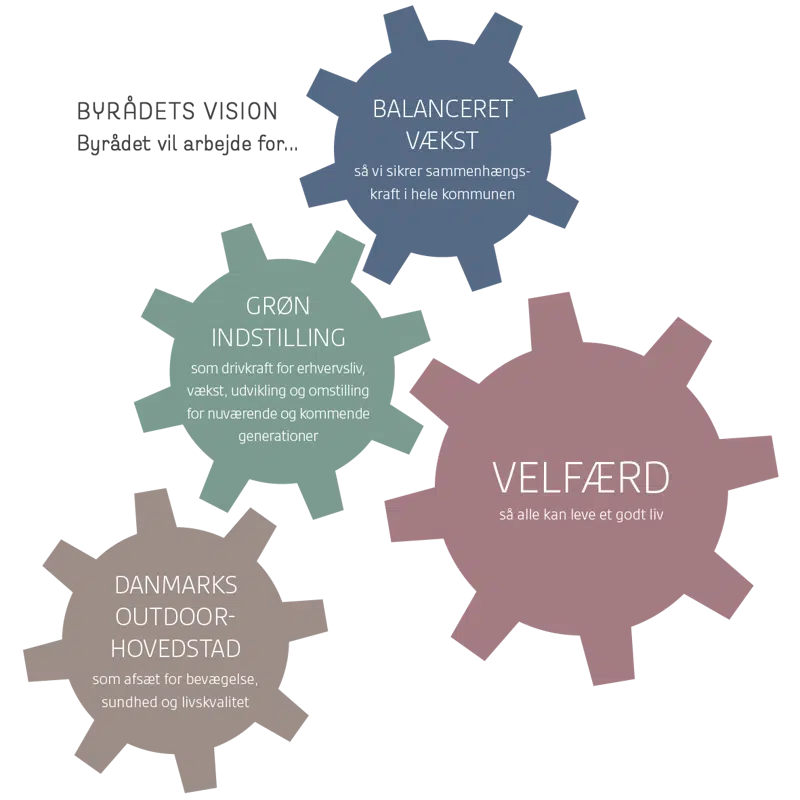 Byrådet vision er at skabe gode rammer, så alle borgere kan leve et godt liv. Det er en stor opgave, som vi kun kan lykkes med i fællesskab. Vi skal derfor styrke sammenhængskraften og koncernperspektivet både internt i organisationen og i forhold til borgerne. Så vi har en fælles vi-kultur på tværs af organisationen, hvor vi i fællesskab bringer vores respektive, stærke fagligheder i spil, og gennem intern koordinering skaber tværfaglige løsninger, så borgere og andre interessenter oplever helhed og sammenhæng i mødet med kommunen.