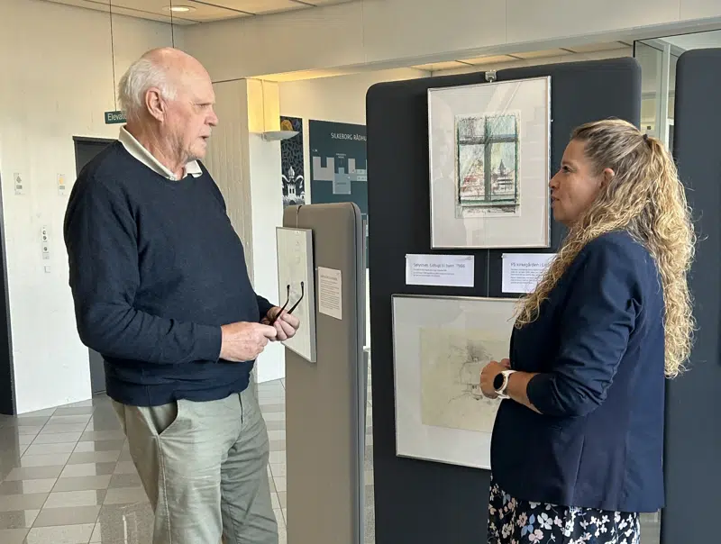 Onsdag den 11. september mødtes kunstneren Leif Dræby og borgmester Helle Gade i rådhusets forhal, hvor otte donerede tegninger fra kunstneren til Silkeborg Kommune er udstillet.
