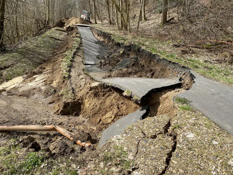 Bryrup Banesti er spærret, da en del af den er skredet væk. Det er på stykket fra Kæmpesmøllevej mod Vinding. Ca. 50 meter fra skredet er der også risiko for, at stien skrider væk.